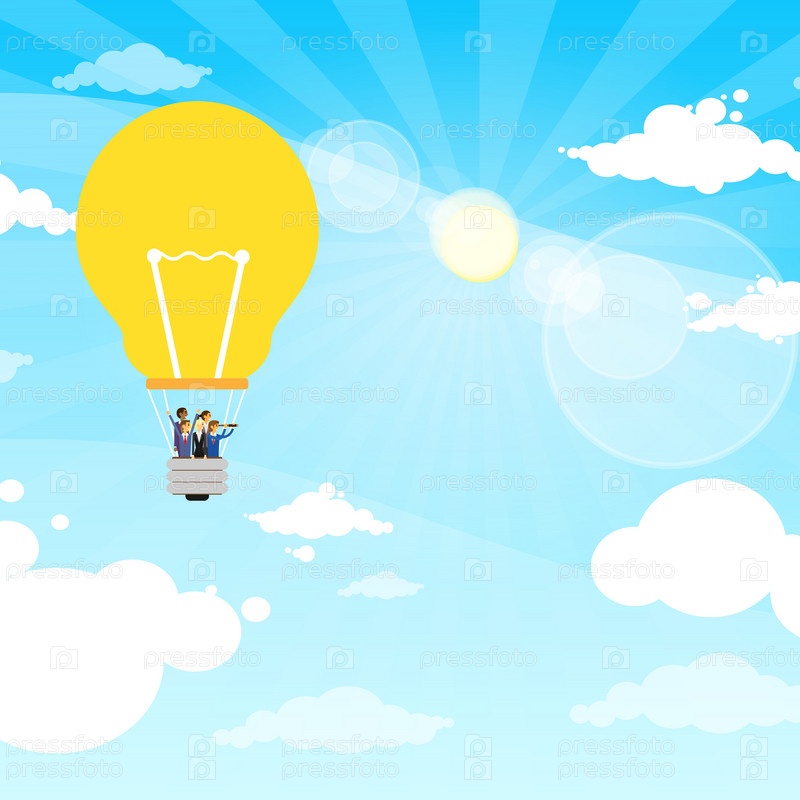 Бизнес группы людей летать воздушный шар света лампы идея