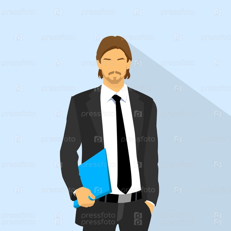 Бизнесмен износ элегантной моды костюм держать синий, Бизнес человек плоский значок значок папки