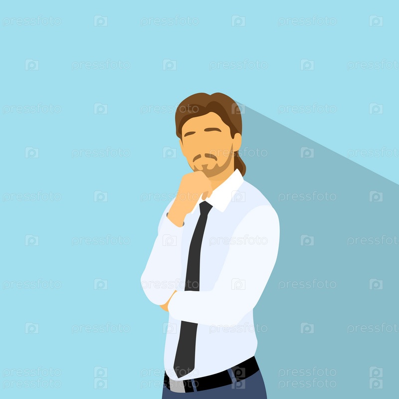 Бизнесмен думаю держать руку на подбородок, деловой человек плоский значок
