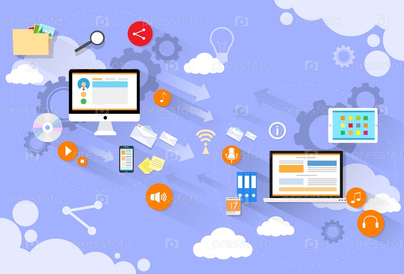 Компьютерные устройства отправить ноутбук облако плоский дизайн