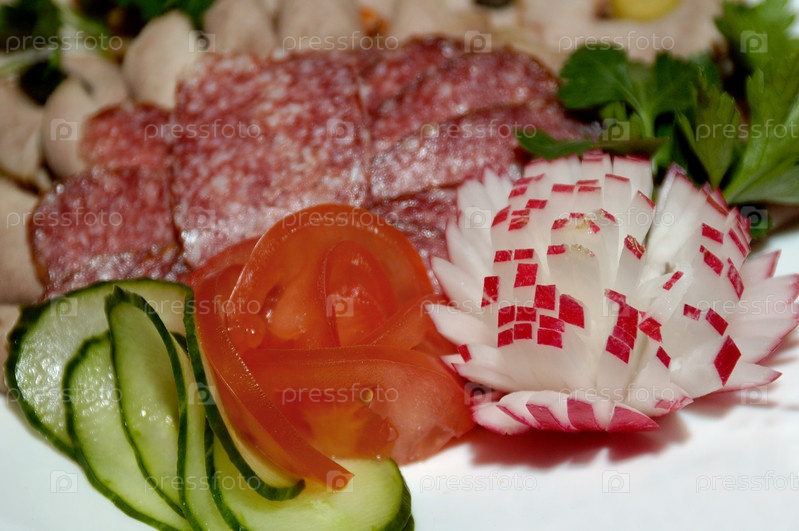 Мясная нарезка оформленная с овощами