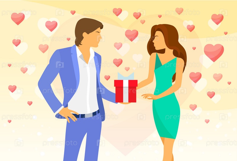 Валентина день красные сердца пара подарок поле вектора