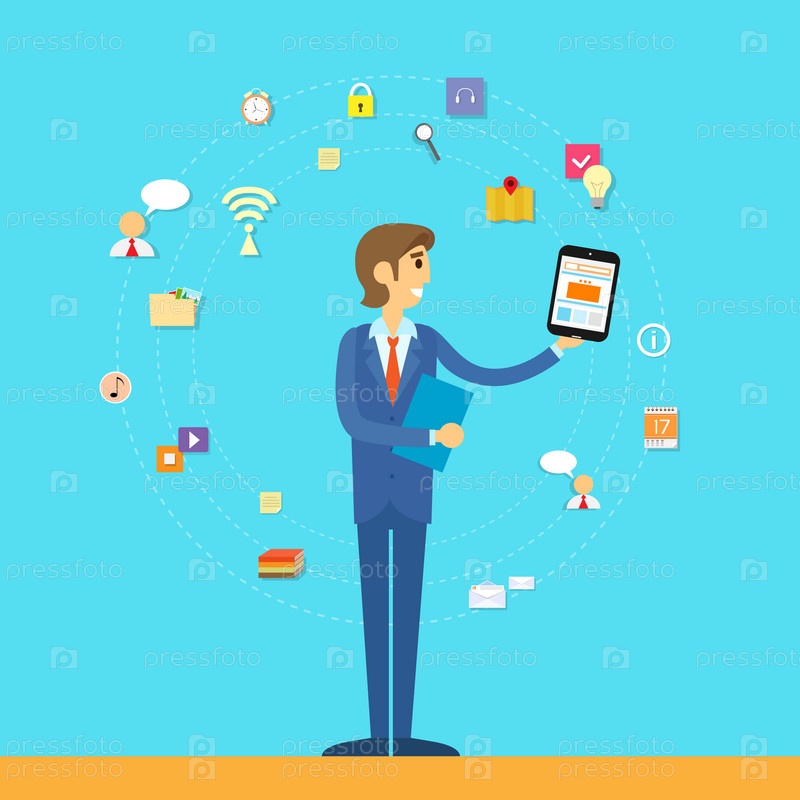 Деловой человек планшетный компьютер значок плоский дизайн
