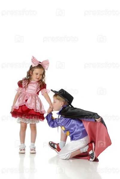 Маленький мальчик целует руку маленькой девочке