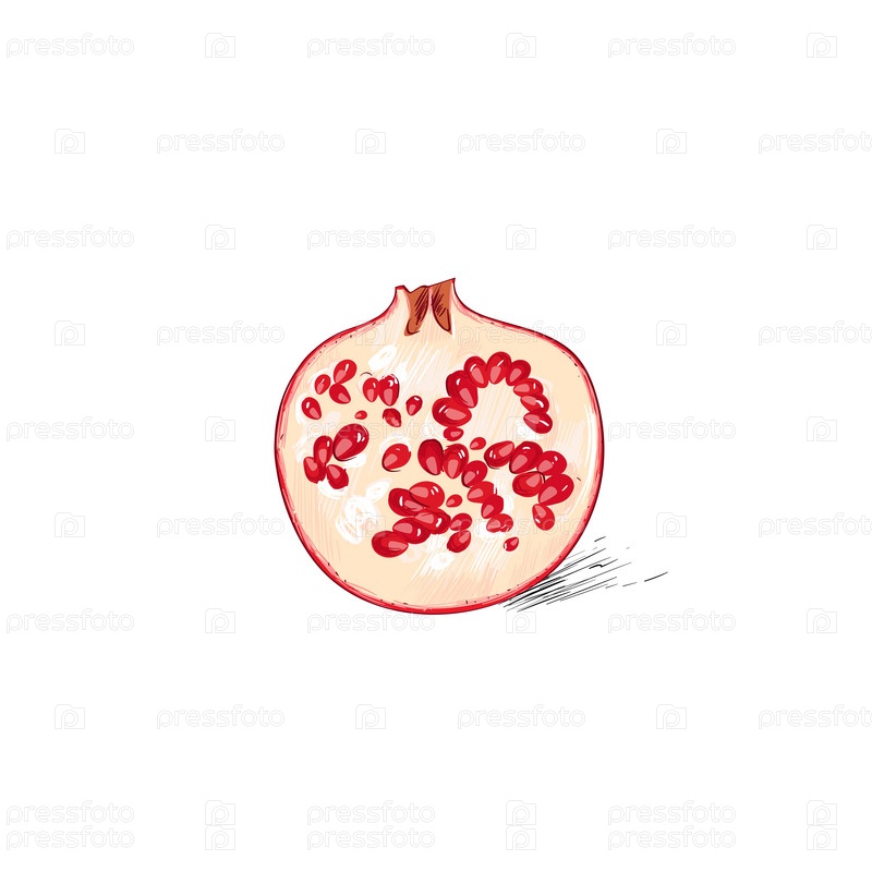 Граната плоды граната эскиз рисовать, изолированные на белом фоне