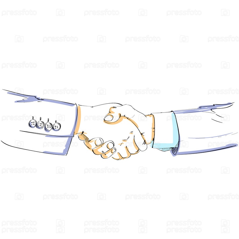 Рукопожатие цветной Эскиз векторный силуэт бизнес руки дрожания, изолированные на белом фоне