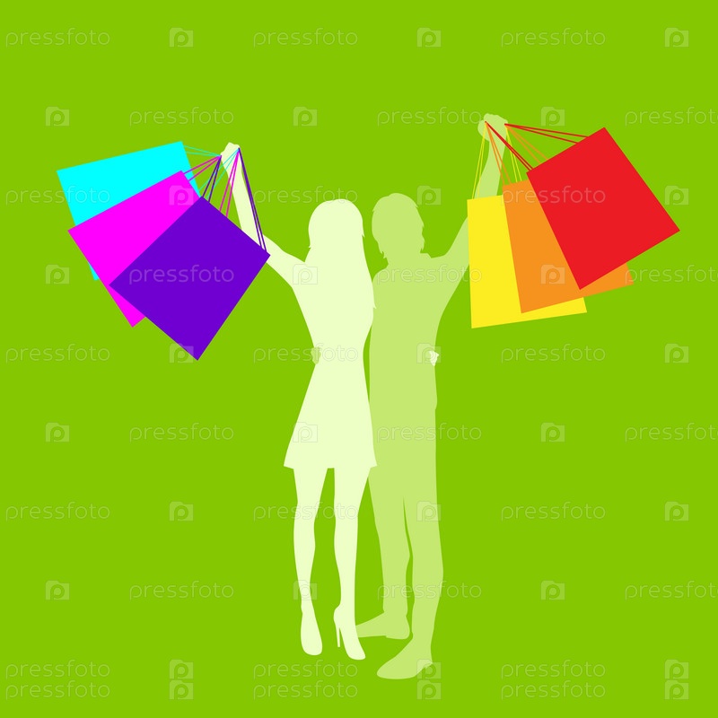 Пара человек и женщина силуэт с мешками