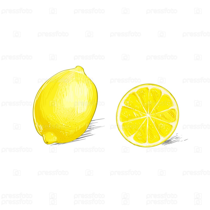 Лимон цитрусовых цвет эскиз рисовать изолирован на белом фоне