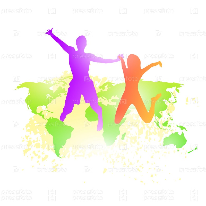 Пара человек и женщина, держа руки перейти силуэт
