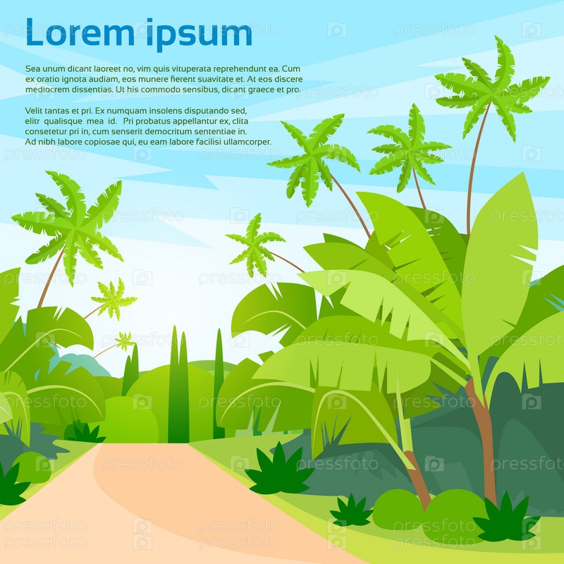 Джунгли лес зеленый пейзаж с дороги путь и голубое небо