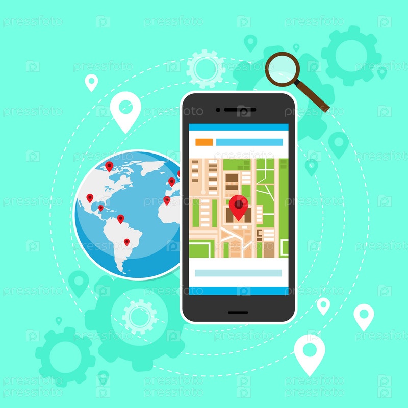 Мобильный сотовый телефон gps карта мира глобус навигация