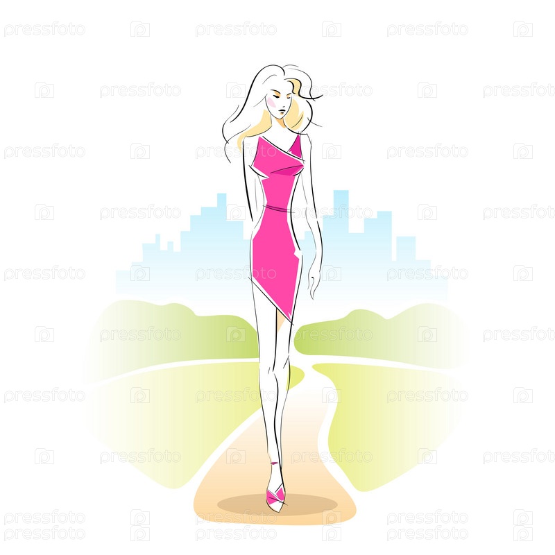 Мода женщины эскиз розовое платье открытый вектор
