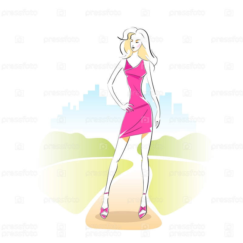 Мода женщины эскиз розовое платье открытый вектор