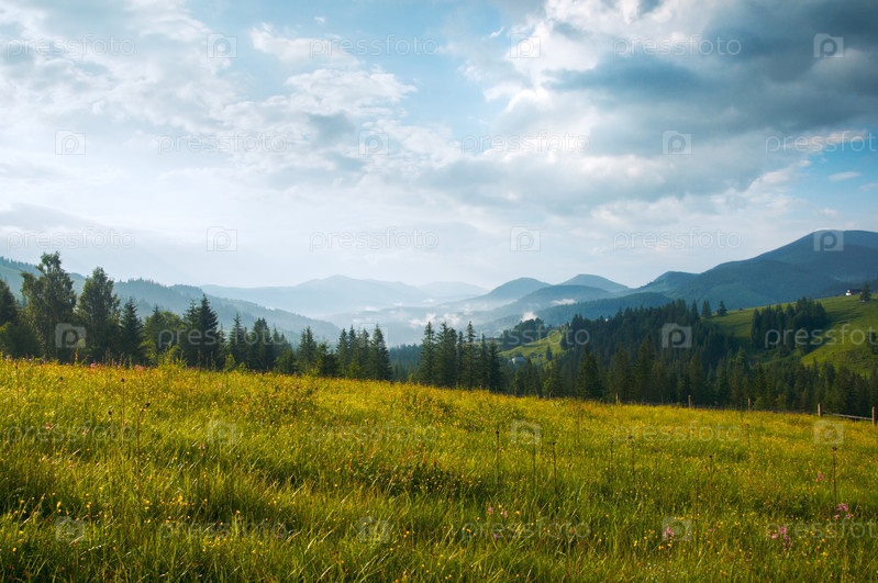 Красивый зеленый луг в Карпатах. Украина