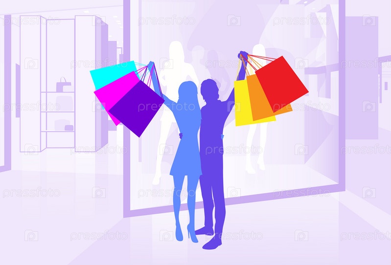 Магазин окна пара силуэт держать покупки