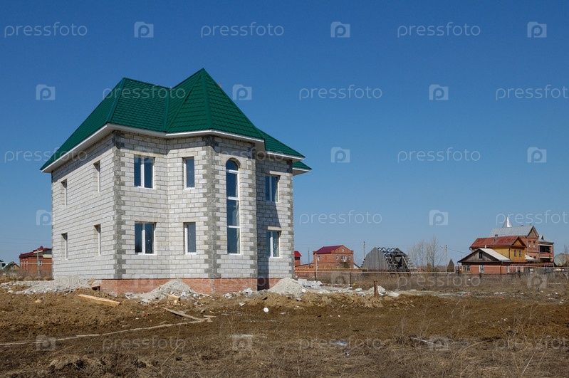 Загородный двухэтажный дом на фоне неба