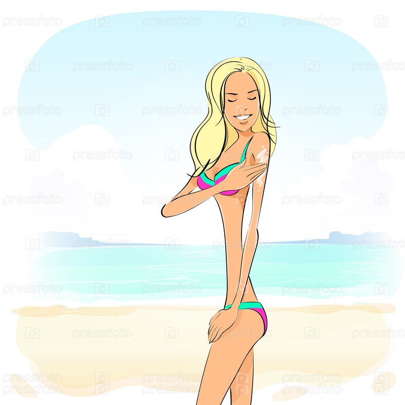 Женщина применяет солнцезащитный крем