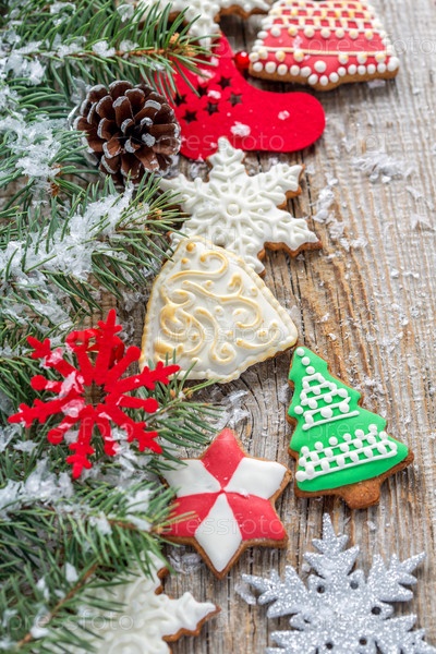 Еловые ветки и рождественские украшения