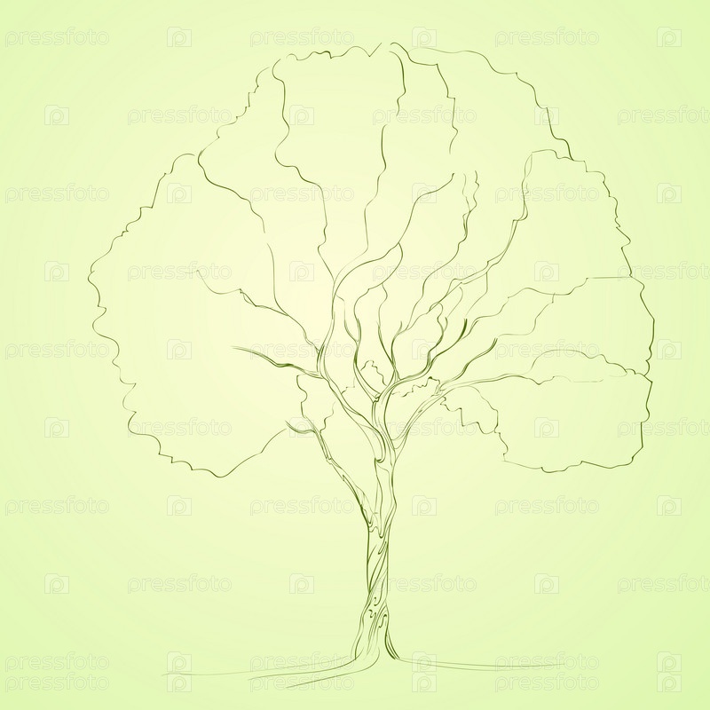 Зеленое дерево эскиз линии силуэт вектор