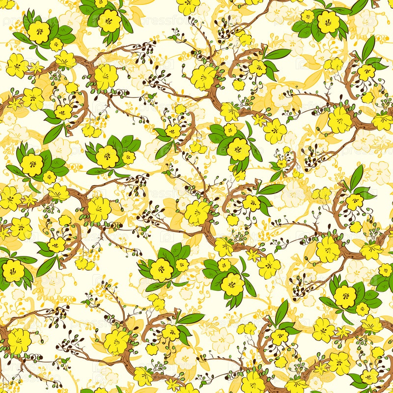 Бесшовный фон Ветвь дерева с желтыми цветами