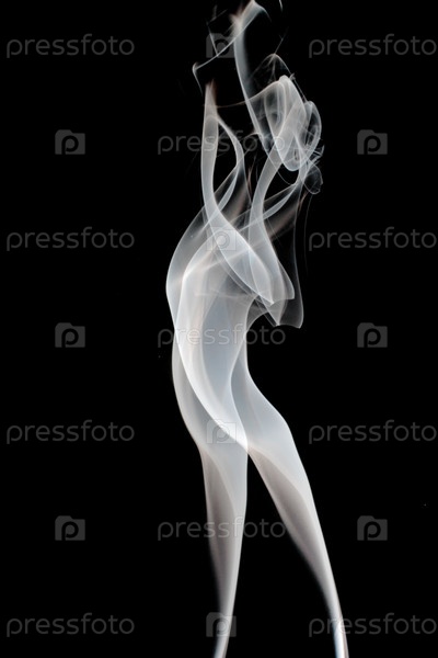 Векторное изображение дыма в виде силуэта девушки на черном фоне