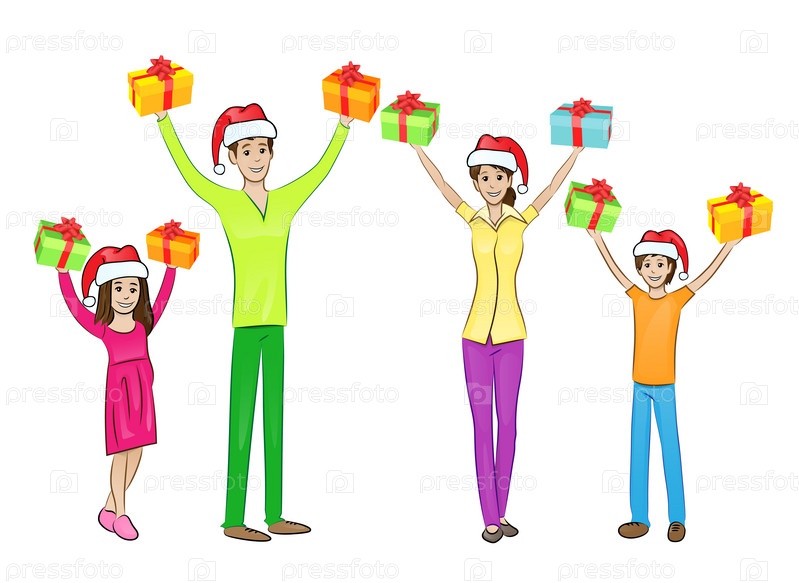Счастливая семья с рождественскими подарками