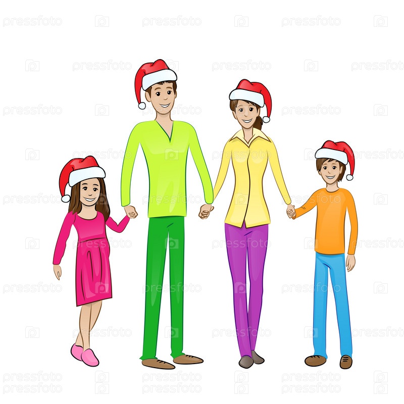 Счастливая семья в Рождественских шапках