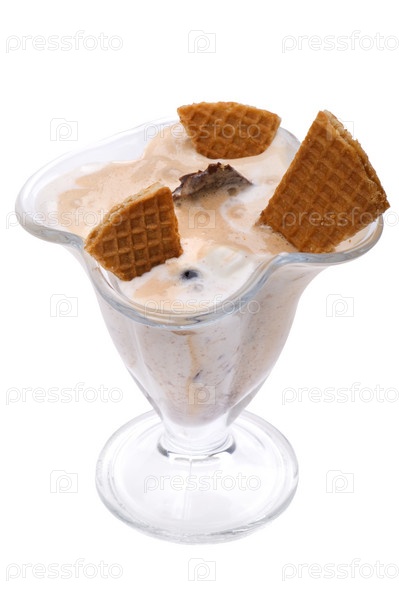 Мороженое с вафлями на белом фоне