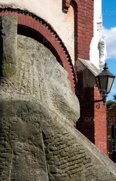 Баптистская церковь Св. Джона и скульптура в Центре города Львова (Украина)