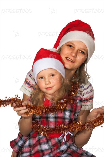 Счастливая мать с дочерью перед рождеством на белом фоне