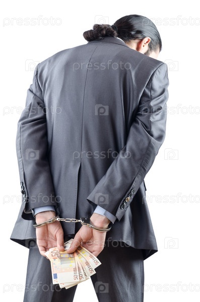 Человек в наручниках с деньгам
