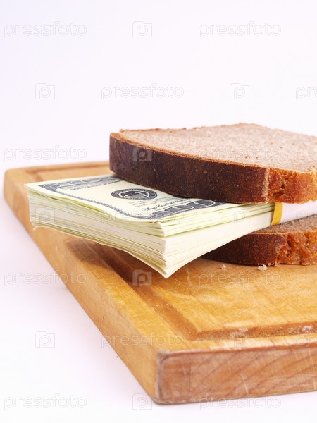 Денежный сэндвич на разделочной доске