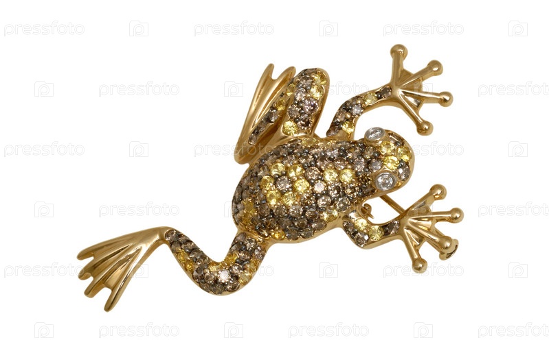 Брошь в виде лягушки на белом фоне
