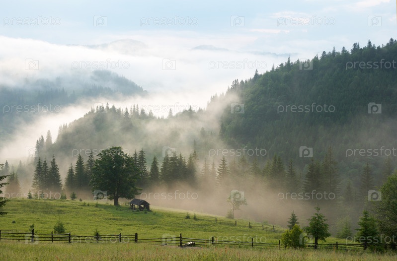 Густой туман летом в горах