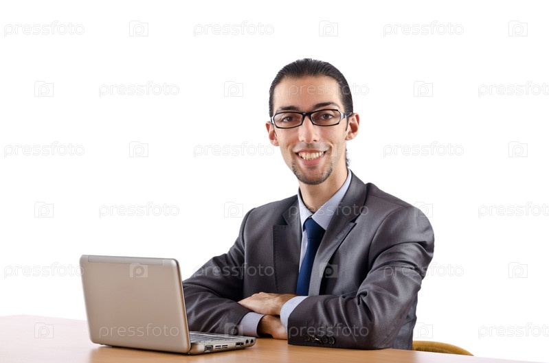 Молодой бизнесмен, работающий на ноутбуке