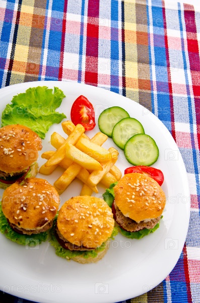 Гамбургеры с картофелем фри на тарелке