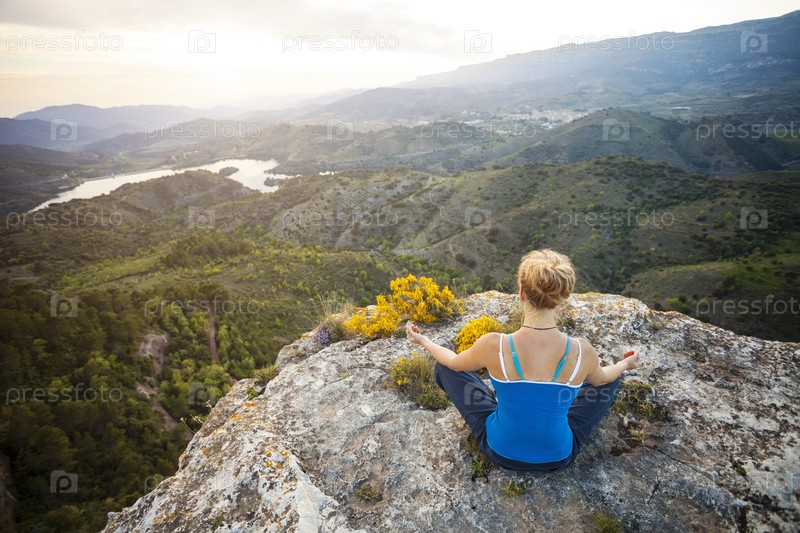 Молодая женщина на вершине холма