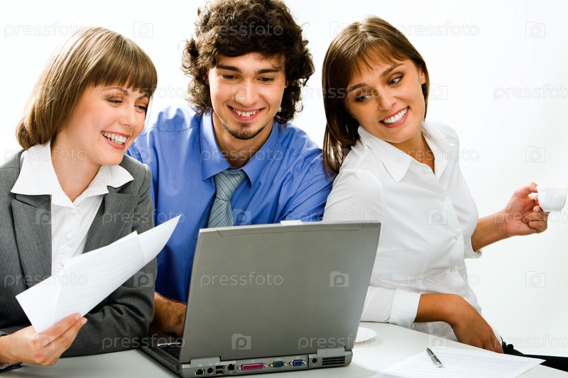 Портрет деловых людей, собравшихся вместе и обсуждающих идею