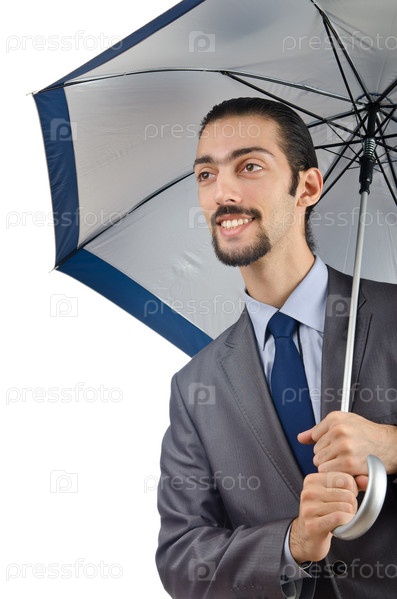 Человек с зонтом на белом фоне