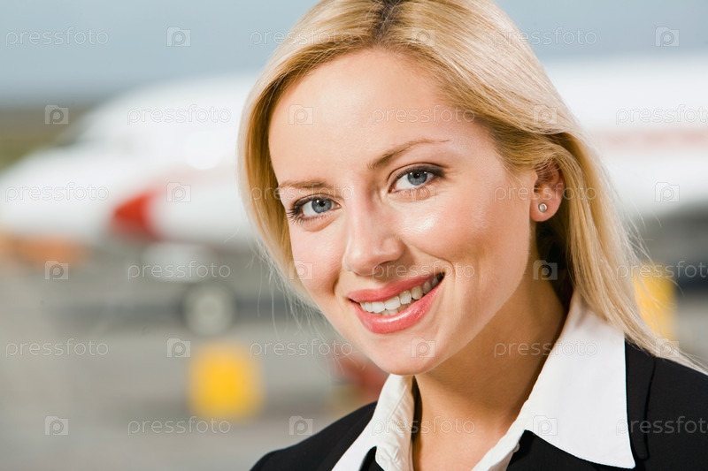 Портрет красивой женщины с очаровательной улыбкой в аэропорту