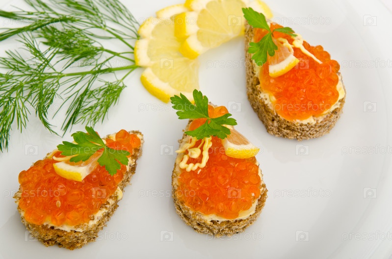 Красная икра на тарелке