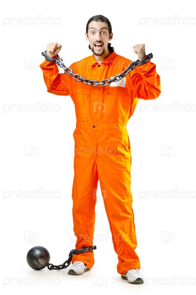 Заключенный в цепях на белом