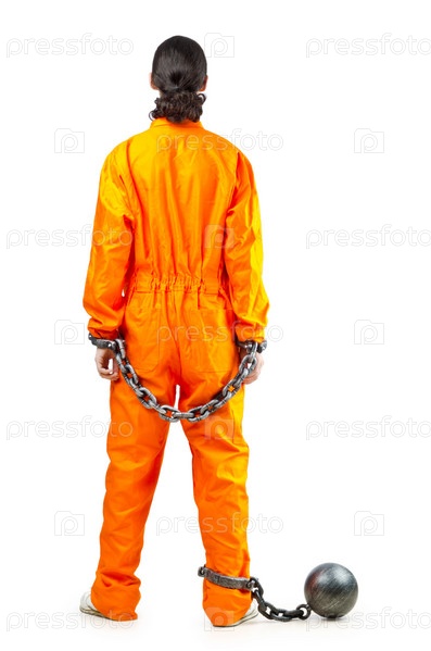 Заключенный в цепях на белом