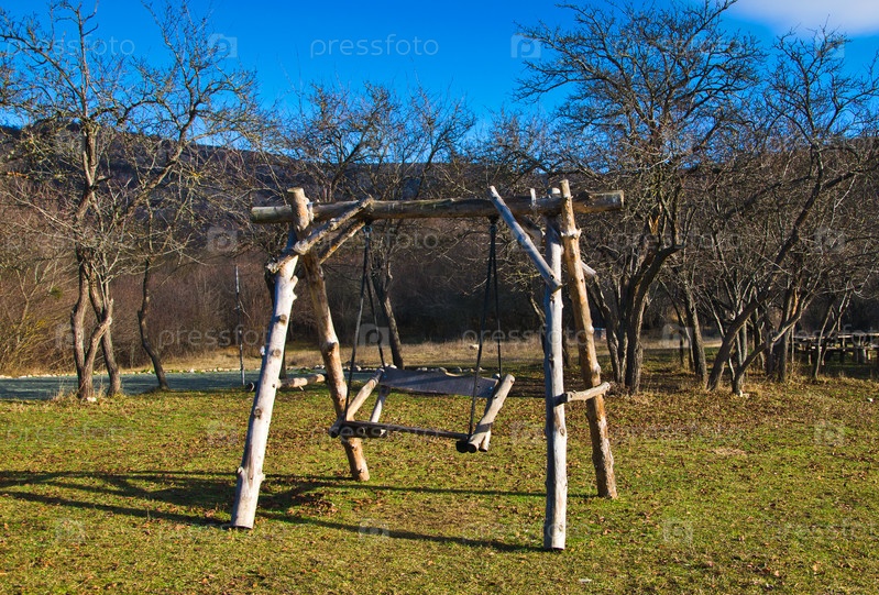 Старые деревянные качели - место отдыха