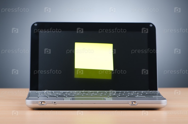 Ноутбук на столе с напоминанием на экране