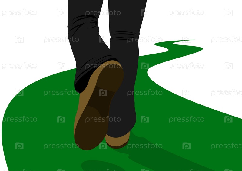 Человек идет по зеленой дороге