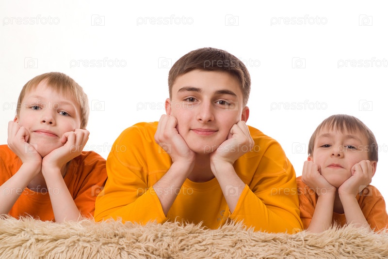 Братья в оранжевых майкихах на ковре