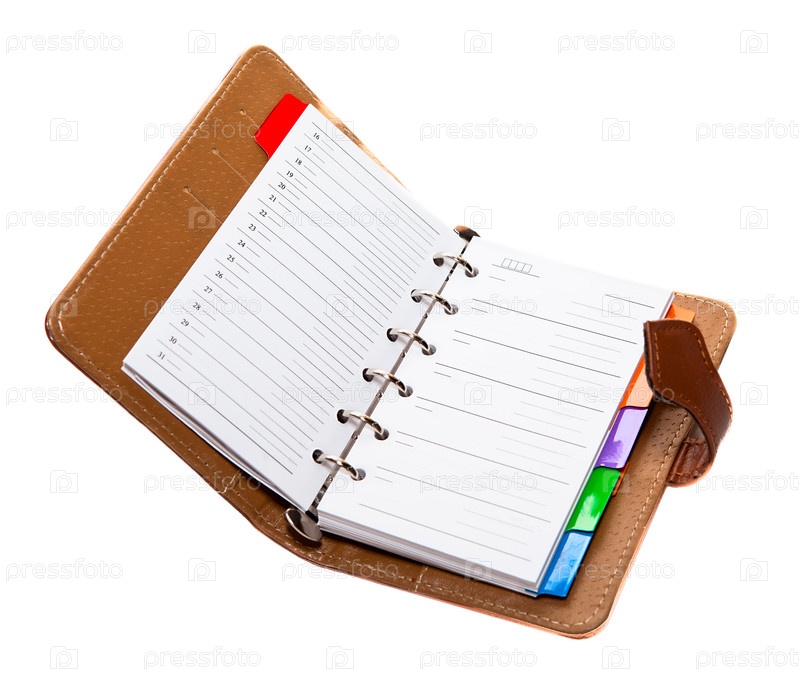Открытый персональный органайзер, на белом фоне