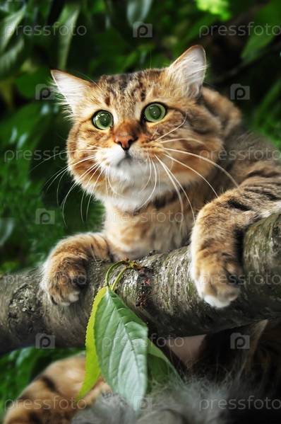 Кошка на ветке дерева