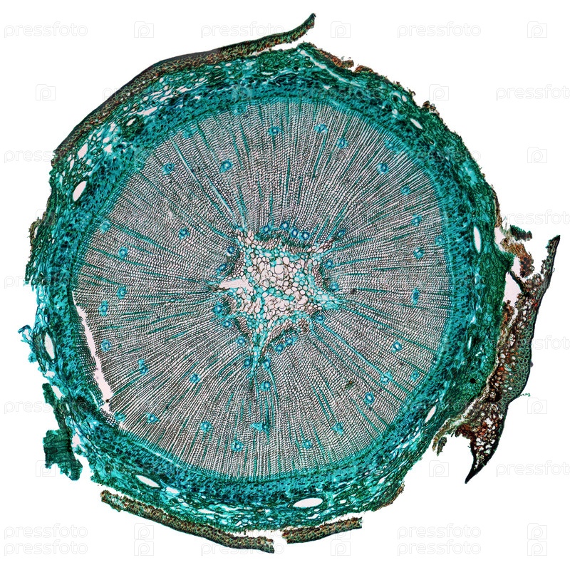 Свет микрофотография высокого разрешения из соснового бруса сечением видел через микроскоп